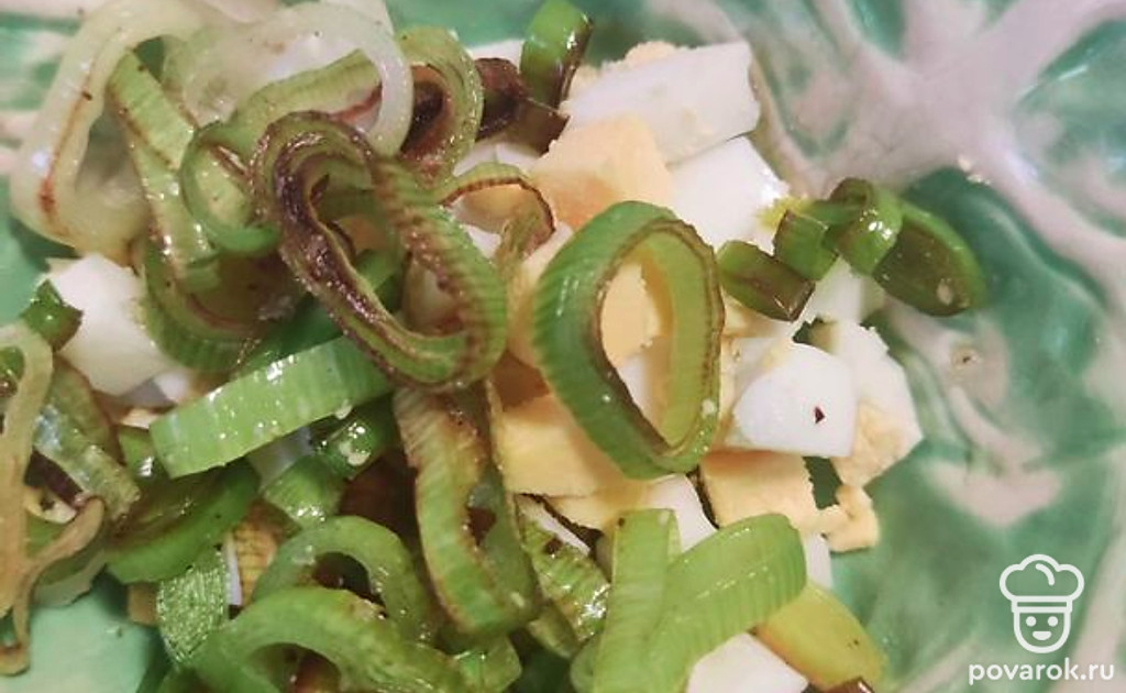 Соединяем лук, яйцо. Солим по вкусу.