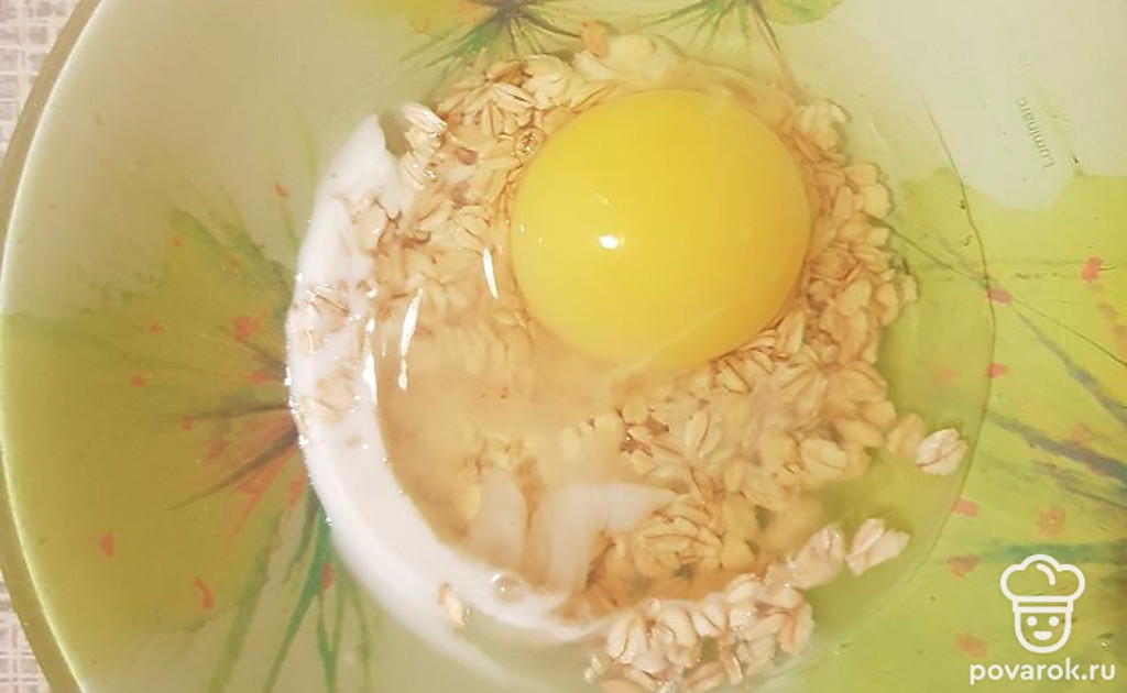 Смешиваем яйцо, молоко и овсяные хлопья. Солим по вкусу.