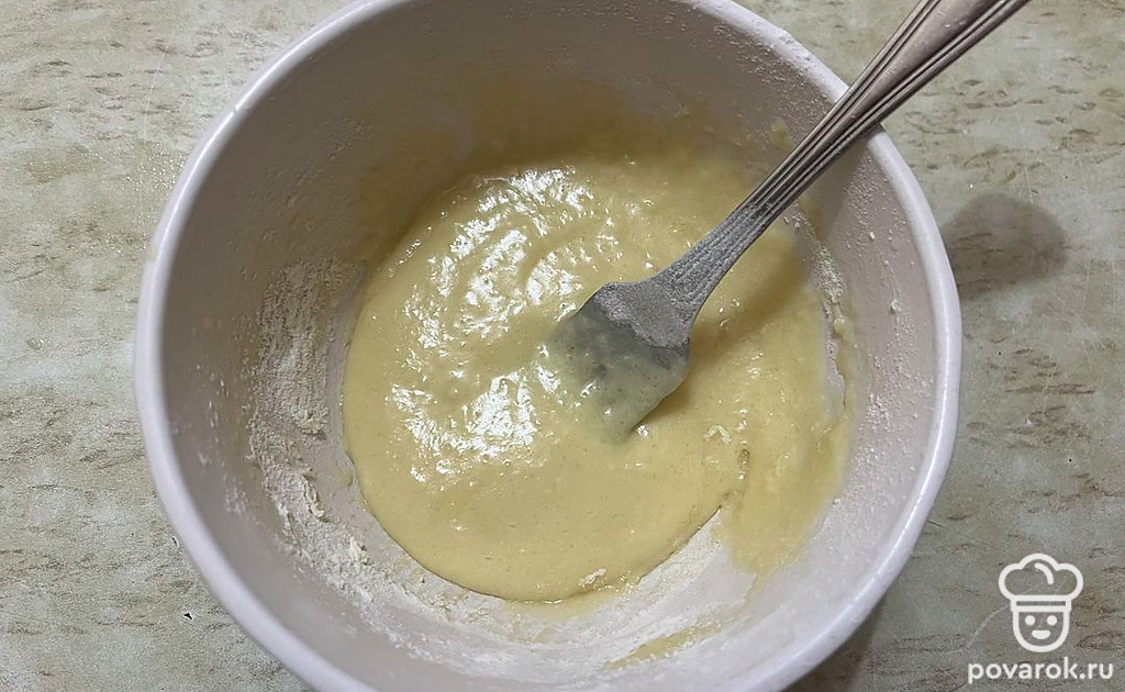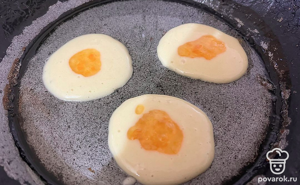 Из 1/2 части теста сформируйте три небольших блинчика.