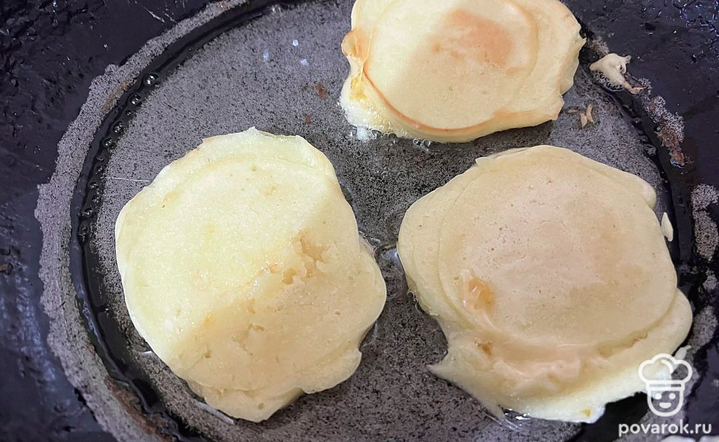 Обжаривайте блинчики с двух сторон до появления золотистой корочки. Это примерно по 3-5 минут с каждой стороны.