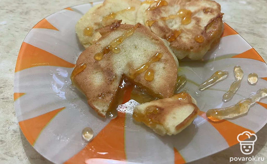 Ароматные мини-блинчики с начинкой из абрикосового джема