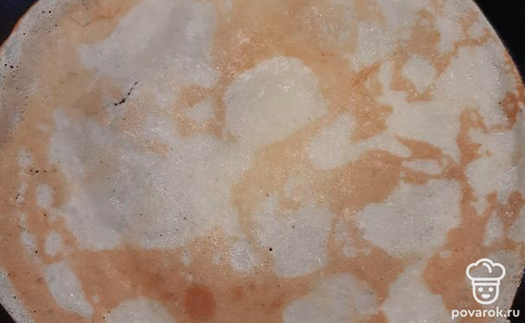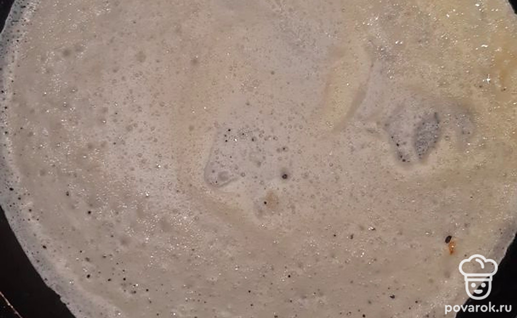 Наливаем блинное тесто и распределяем по всей поверхности сковороды.