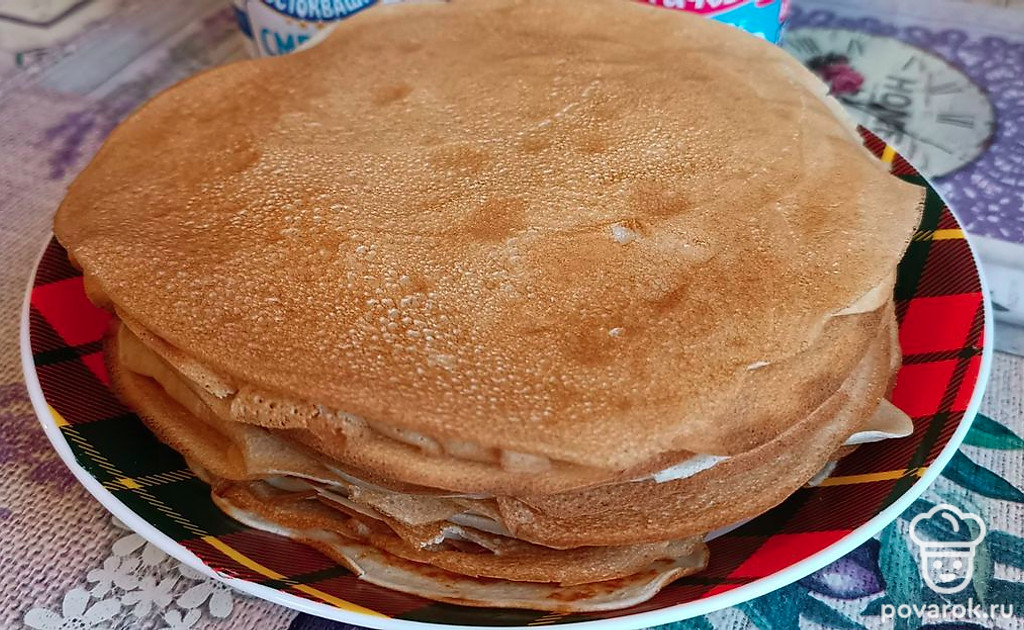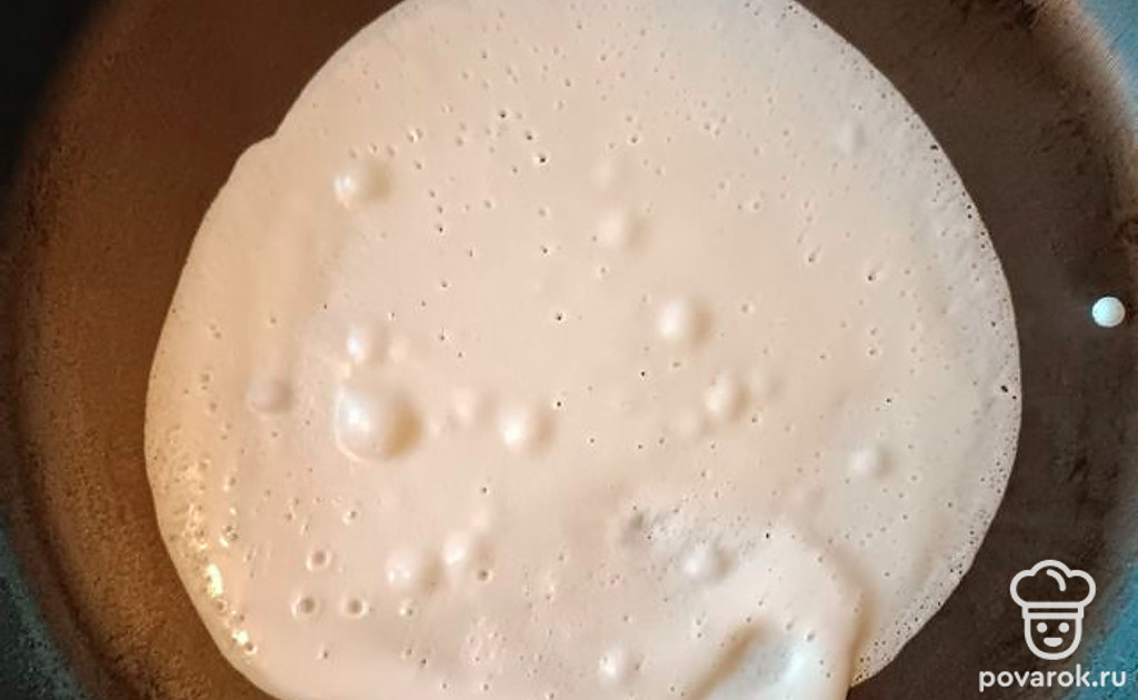 Хорошо разогретую сковороду немного сбрызнуть растительным маслом для первого блина. Выпекать блины. Больше смазывать маслом не надо.