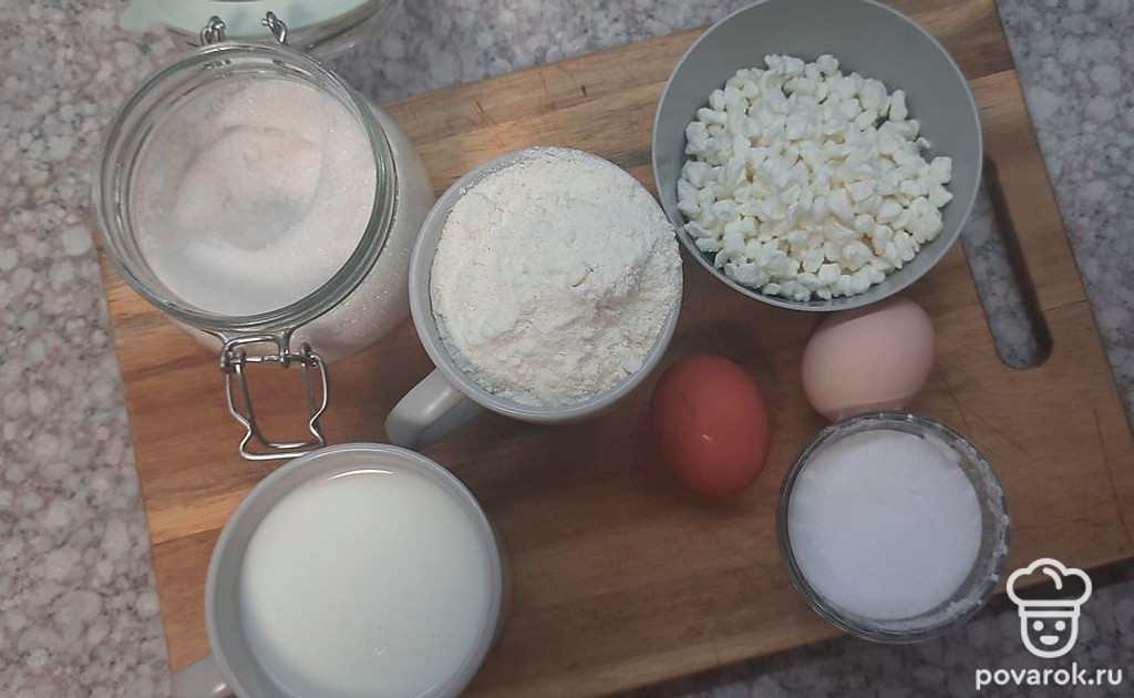 Подготовить все ингредиенты. Творог и молоко можно использовать любой жирности.