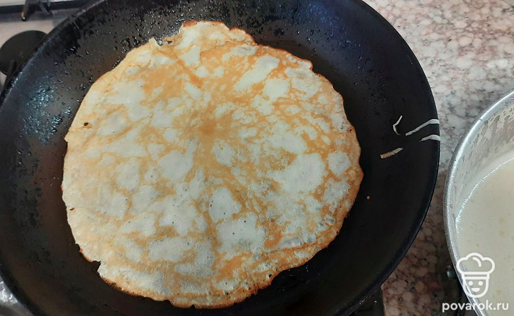Сковороду разогреть, смазать растительным маслом и обжарить блины с двух сторон.