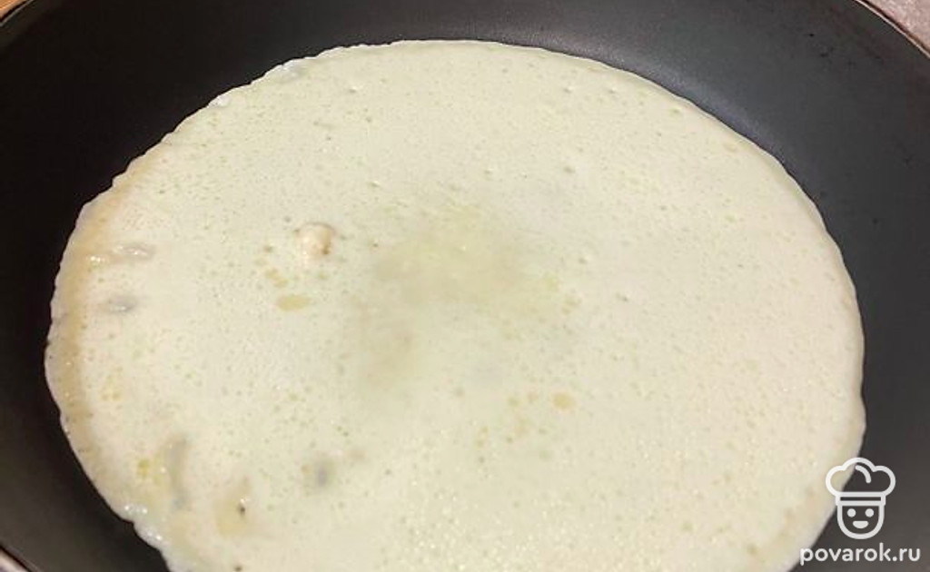 Выпекаем блины, обжариваем с двух сторон.