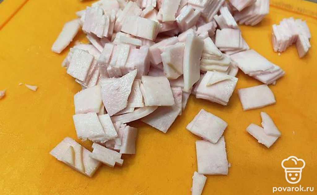 Мелко нарезаем ветчину.