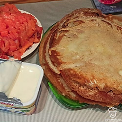 Смешать все ингредиенты, жарить блинчики на сухой сковороде.