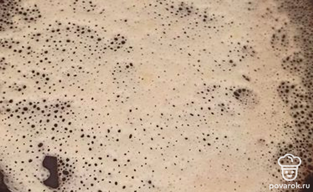 Взбить яйца с сахаром, солью. Добавить молоко, муку, кипяток, растительное масло, чтобы получилось жидкое тесто.