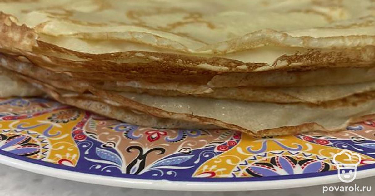 Хорошо разогреть сковороду. Смазать маслом, выпекать блины на среднем огне с двух сторон до золотистого цвета.