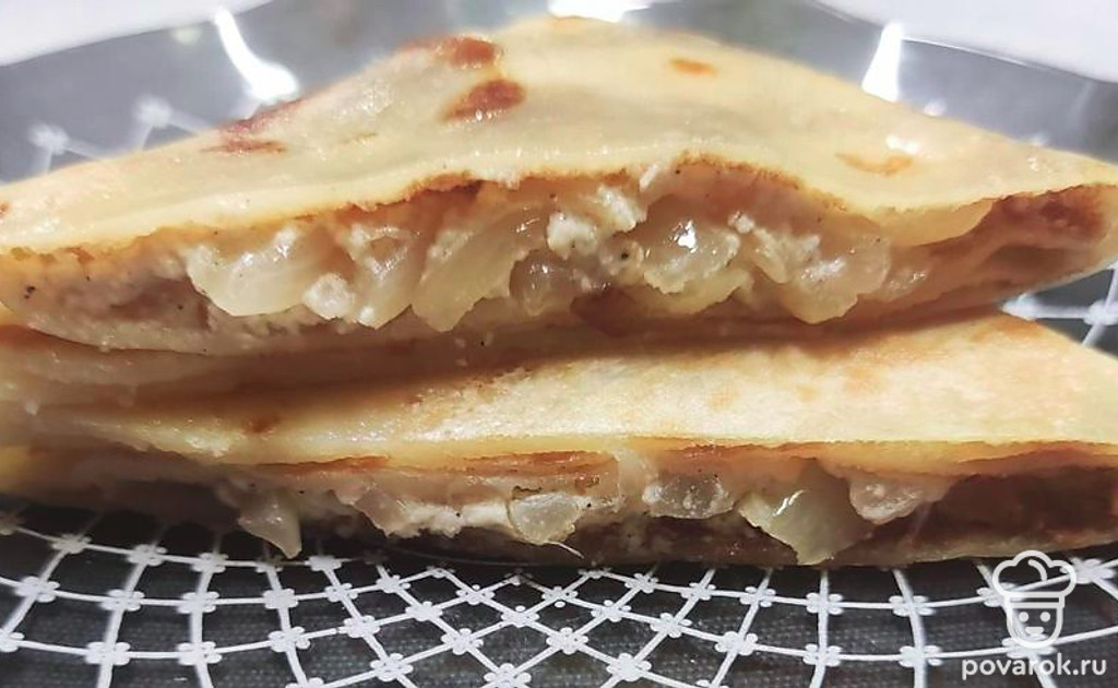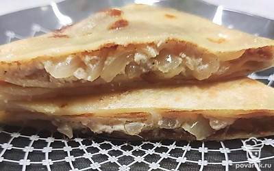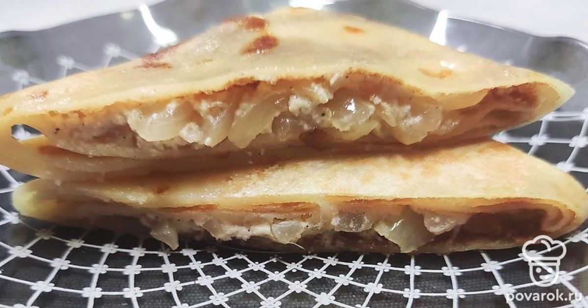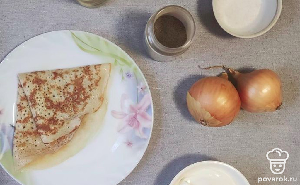 Сытные блинчики с репчатым луком, томленном в сметане.