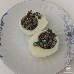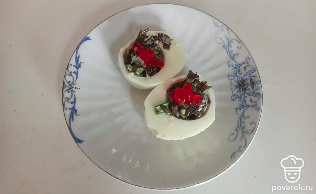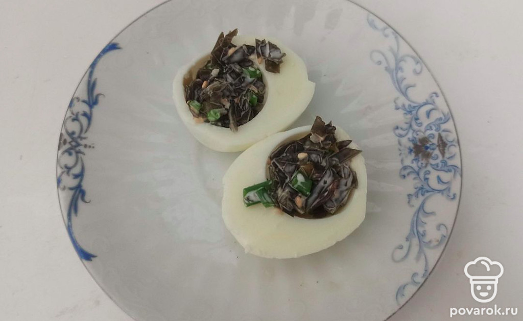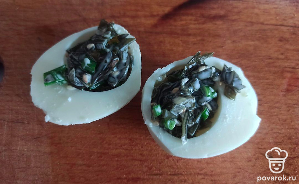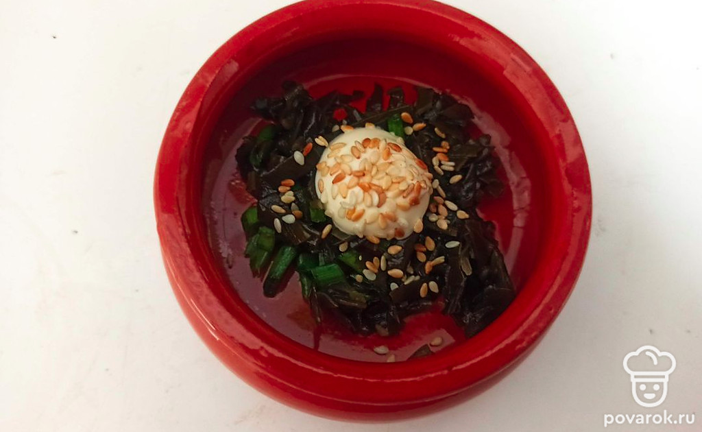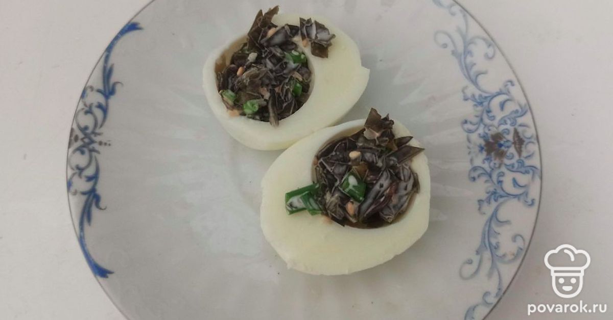 Яйцо, фаршированное морской капустой с жареным кунжутом