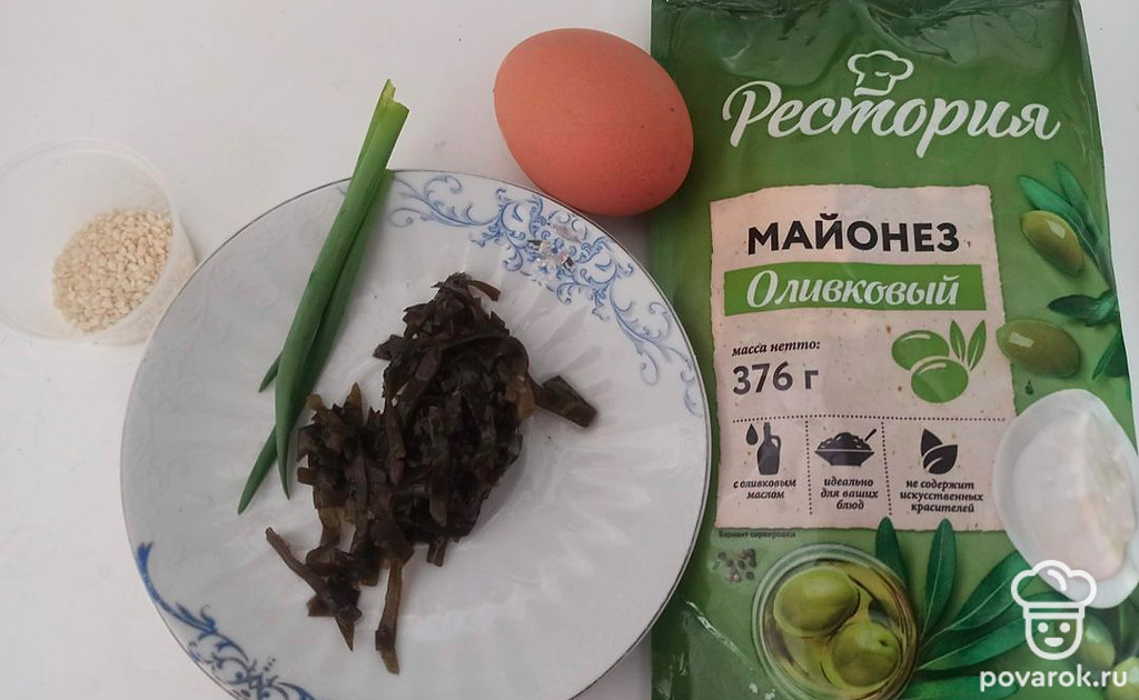 Смешайте морскую капусту, лук, кунжут, майонез с щепоткой соли.