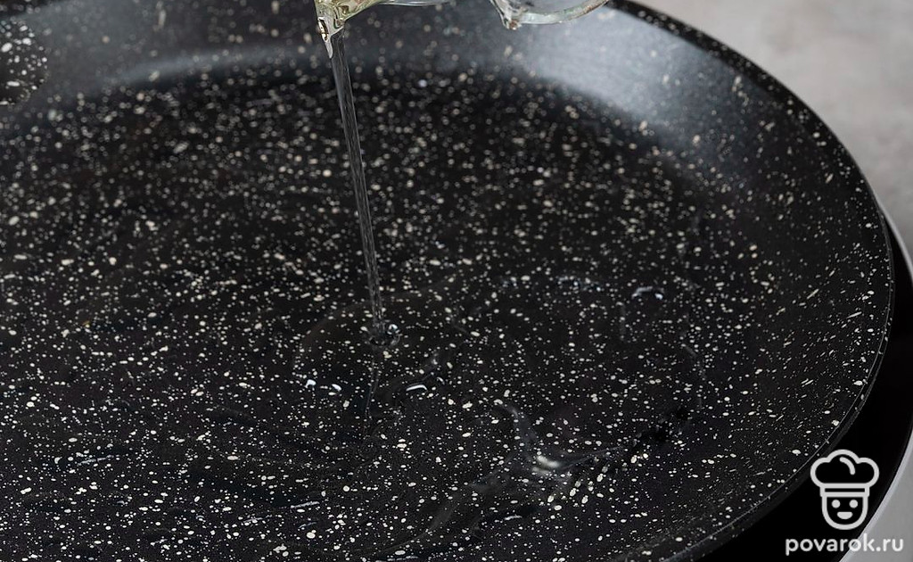 Смажьте сковороду тонким слоем оставшегося масла. Разогрейте ее.