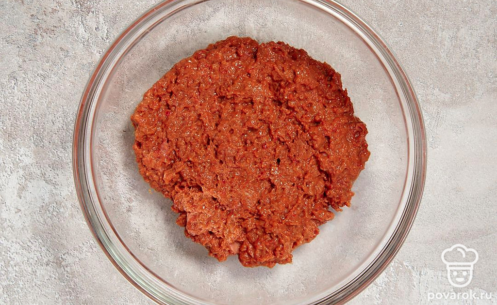 Пропустите печень через мясорубку два или три раза, чтобы получить однородную жидкую массу.