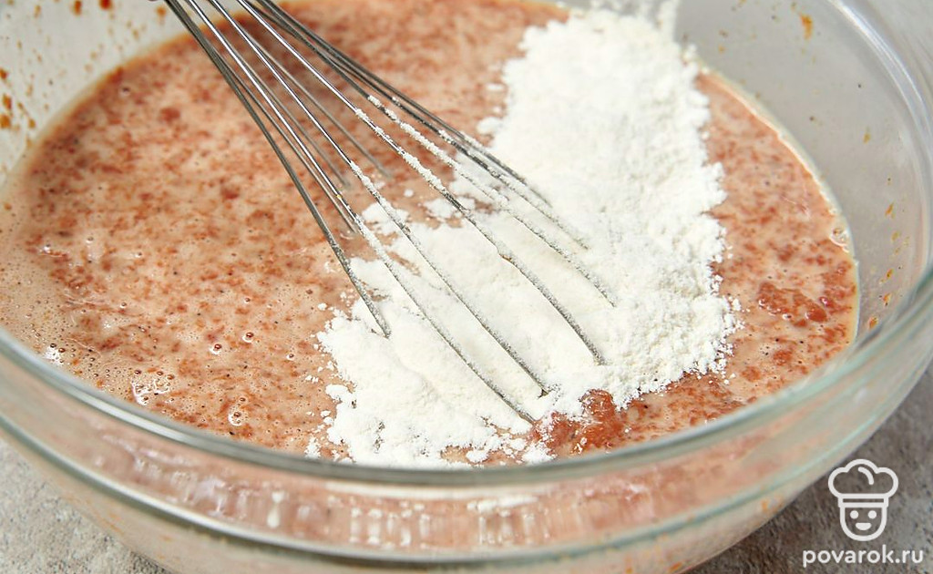 Добавьте муку. Тщательно все смешайте, пока не добьетесь однородной консистенции теста. Оставьте на 10-15 минут, чтобы тесто настоялось.
