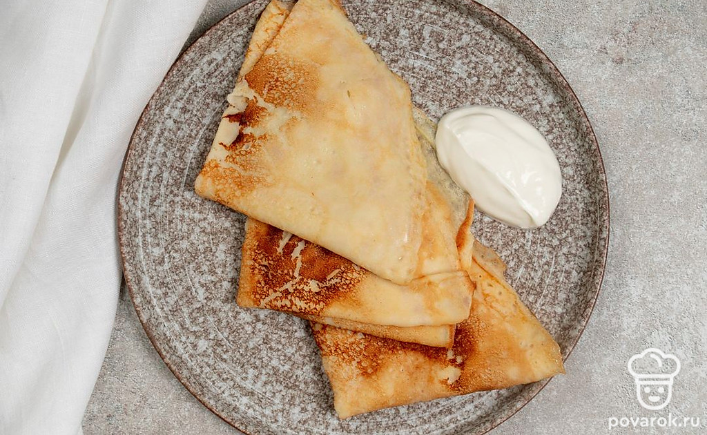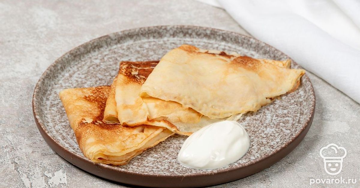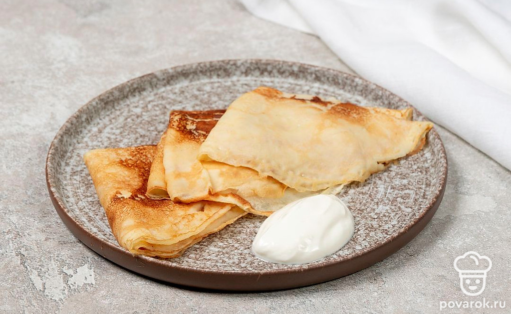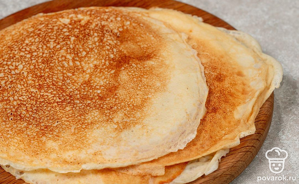 Тонкие блины на молоке можно подавать с разными начинками, такими как творог, сметана, мед или варенье. Также можно добавить в блины начинку из мяса, рыбы или овощей. Это универсальный рецепт, в котором есть одна хитрость. Чтобы блины получились мягче, добавьте в тесто немного газированной воды. А дальше жарьте их так же, как и обычные.