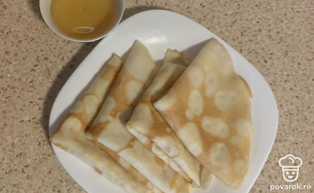 Выпекайте на среднем огне. На качество блинов очень влияет сковорода. Можно использовать специальную.