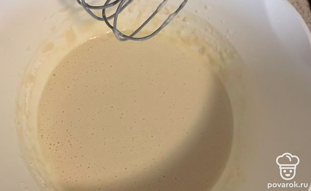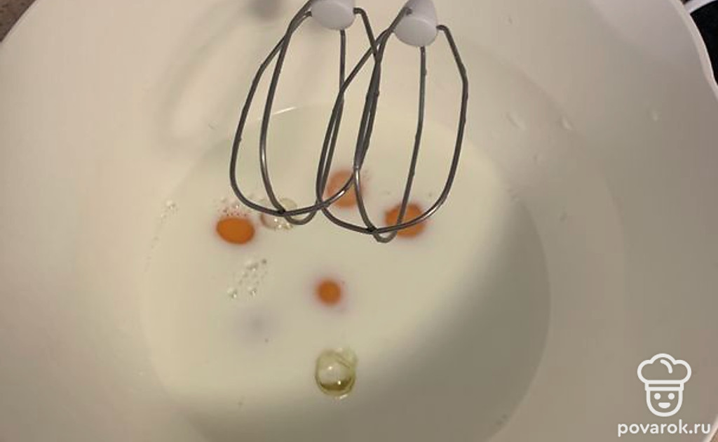 Яйцо, молоко, соль и сахар смешайте до однородности. Можно использовать венчик или миксер.