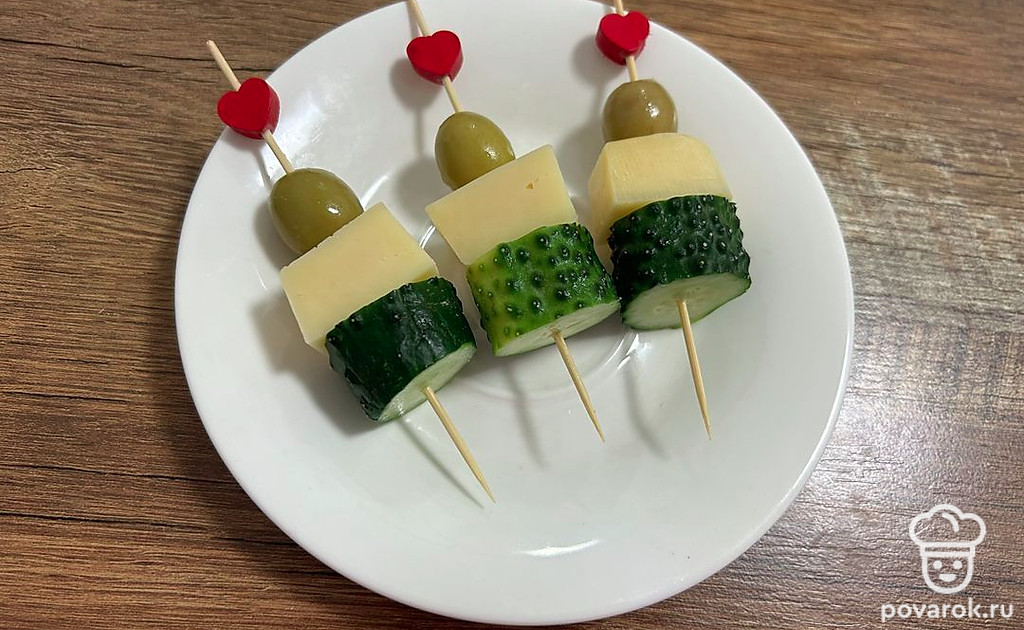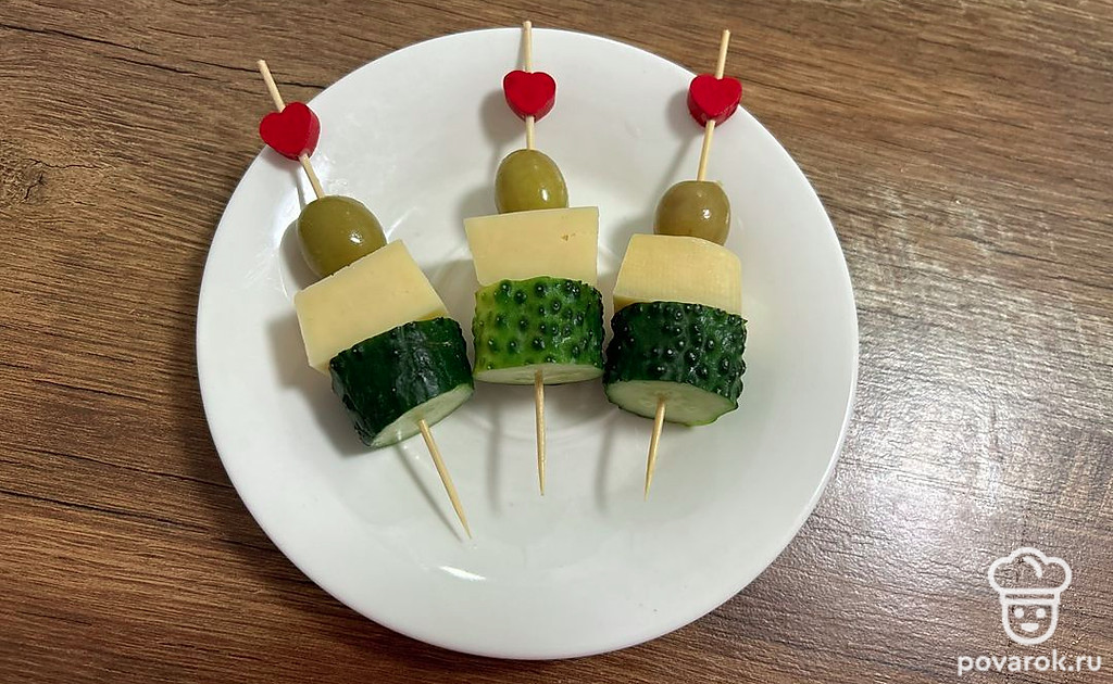 Шпажки переложите на тарелку. Подавайте к столу. Приятного аппетита!