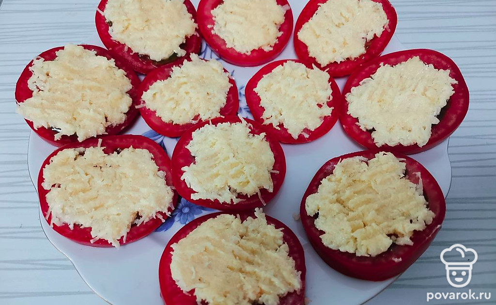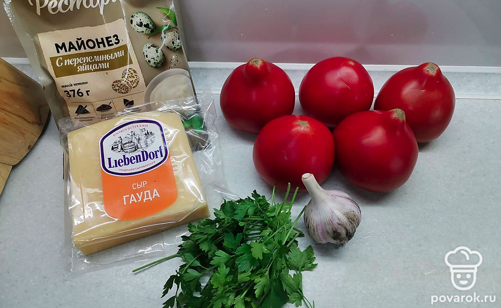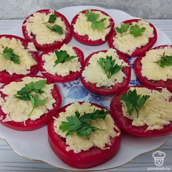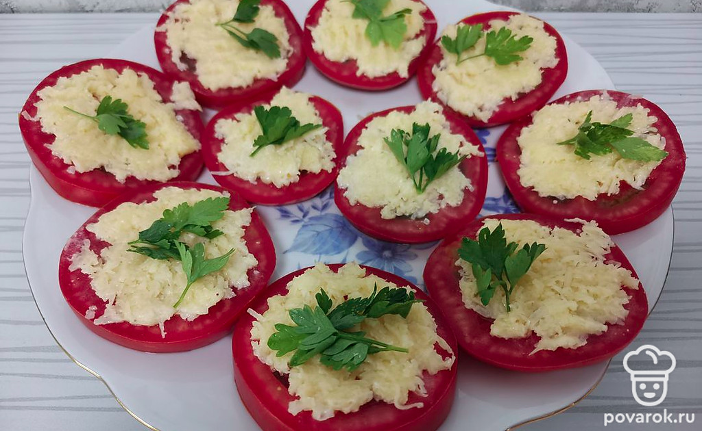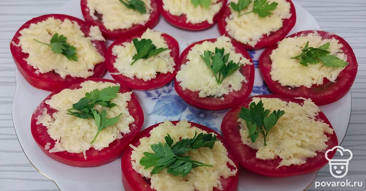 Помидоры под сырно-чесночной шубой. Закуску можно подать на праздничный стол. Угощайтесь!
