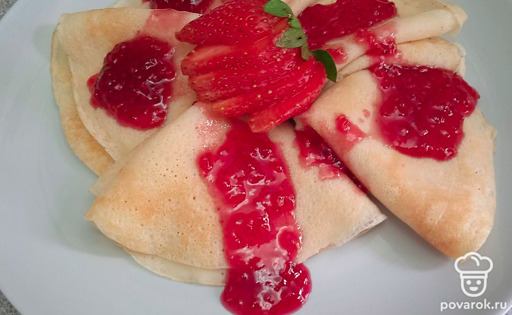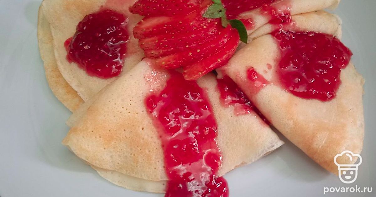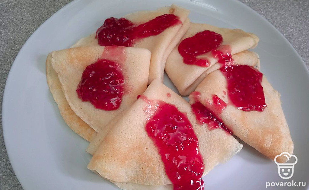 Блинчики на молоке с малиновым вареньем