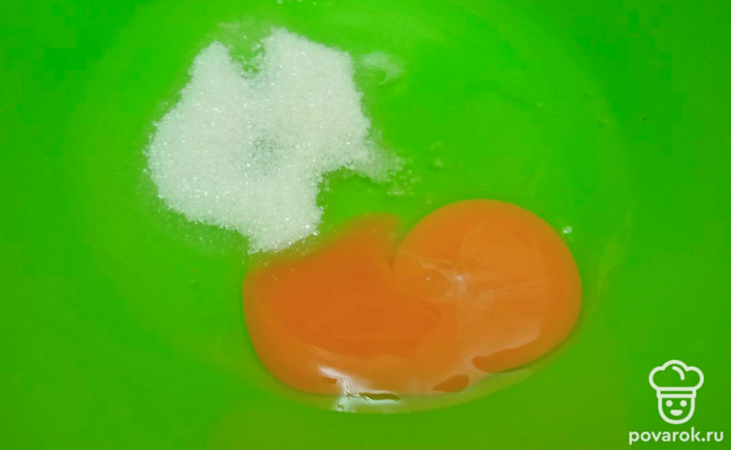 Смешайте яйцо, сахар и соль.