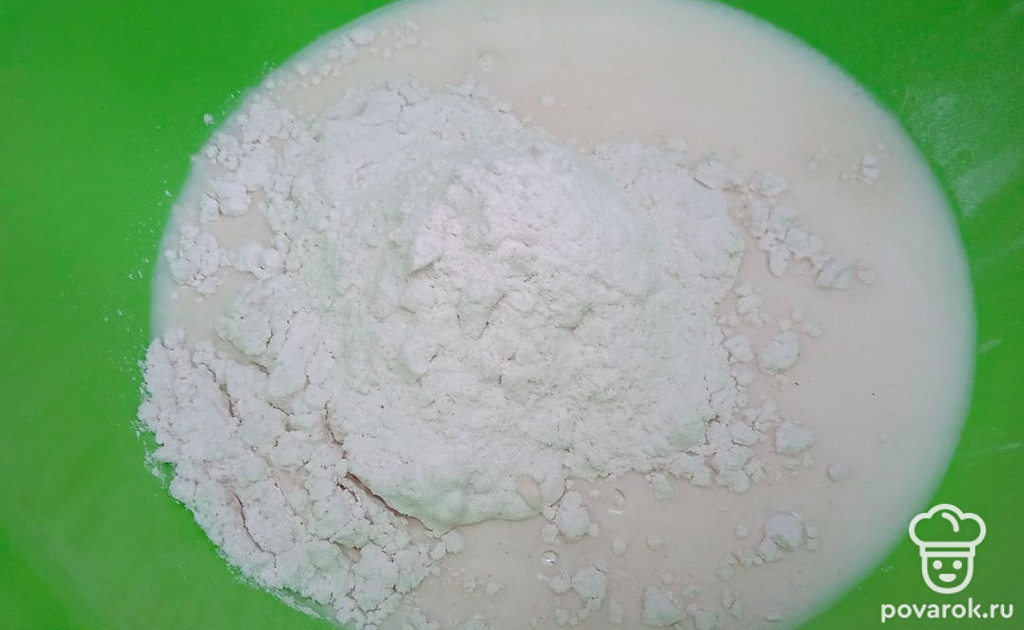 Всыпьте муку.