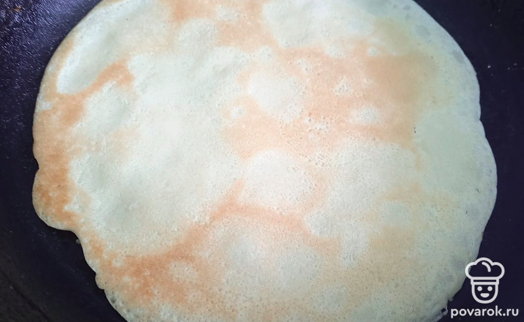 Обжаривайте блинчики на среднем огне примерно по 50 секунд с каждой стороны.