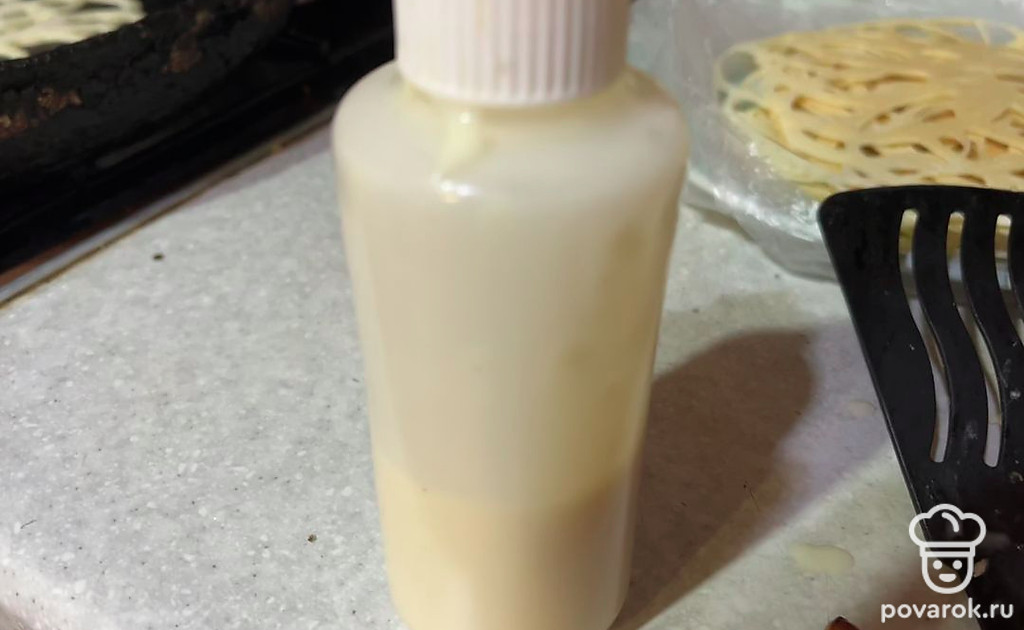 Приготовленное тесто перелейте в бутылочку с тонким носиком.
