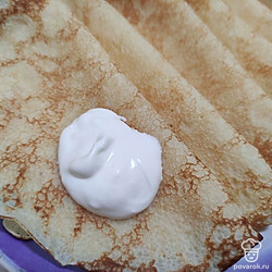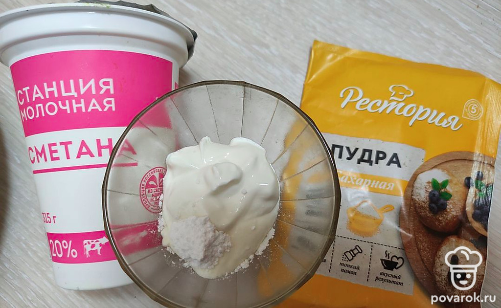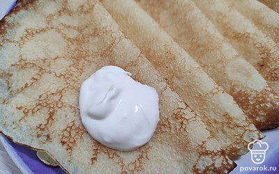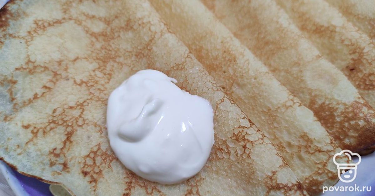 Сметану смешайте с сахарной пудрой и ванилином, подайте к блинам.
