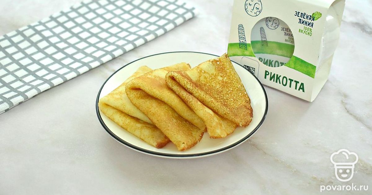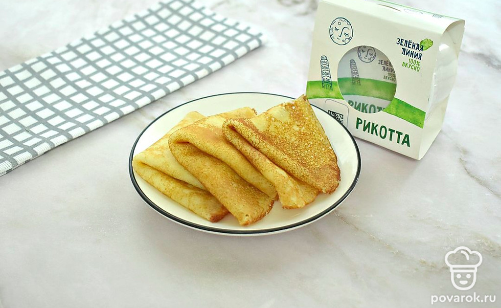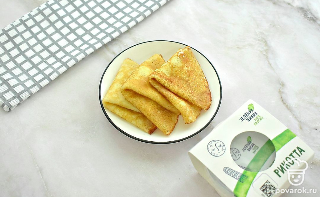 Блинчики с рикоттой получились сладкими и вкусными. Приятного всем аппетита!