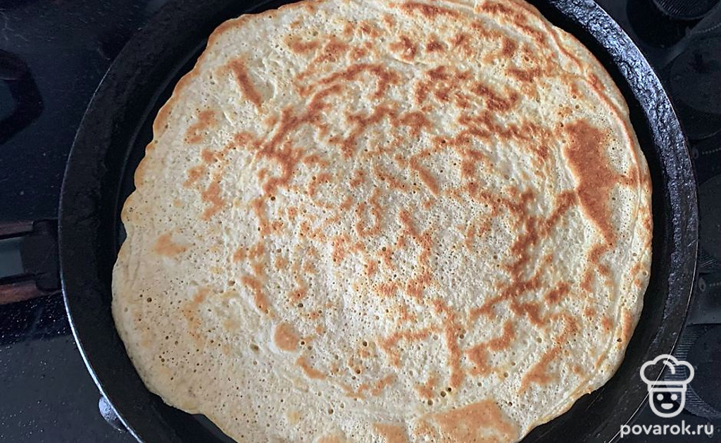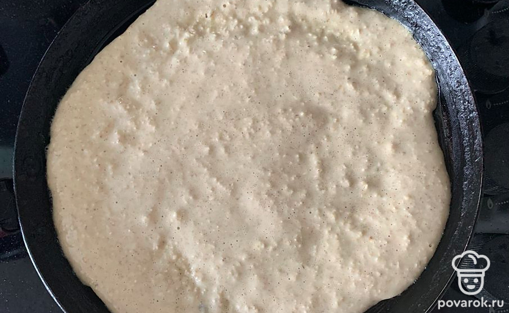 На разогретую сковородку выложить тесто, готовить на среднем огне.