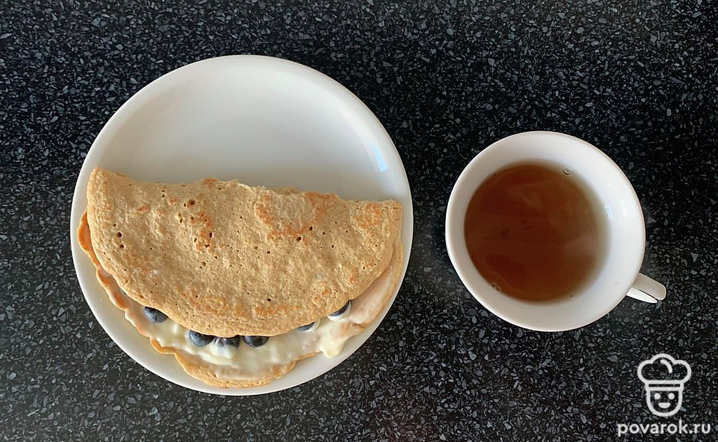 Накрыть начинку второй половинкой овсяноблина. Блюдо готово.