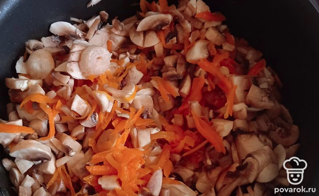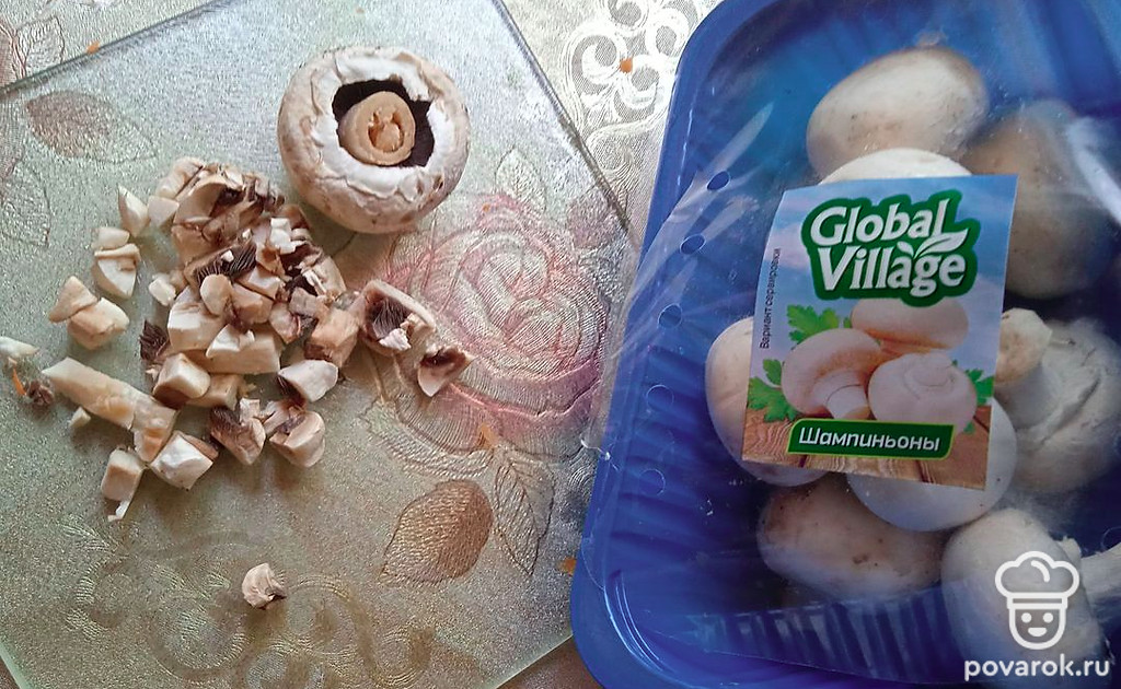 Шампиньоны помойте и нарежьте мелкими кубиками.