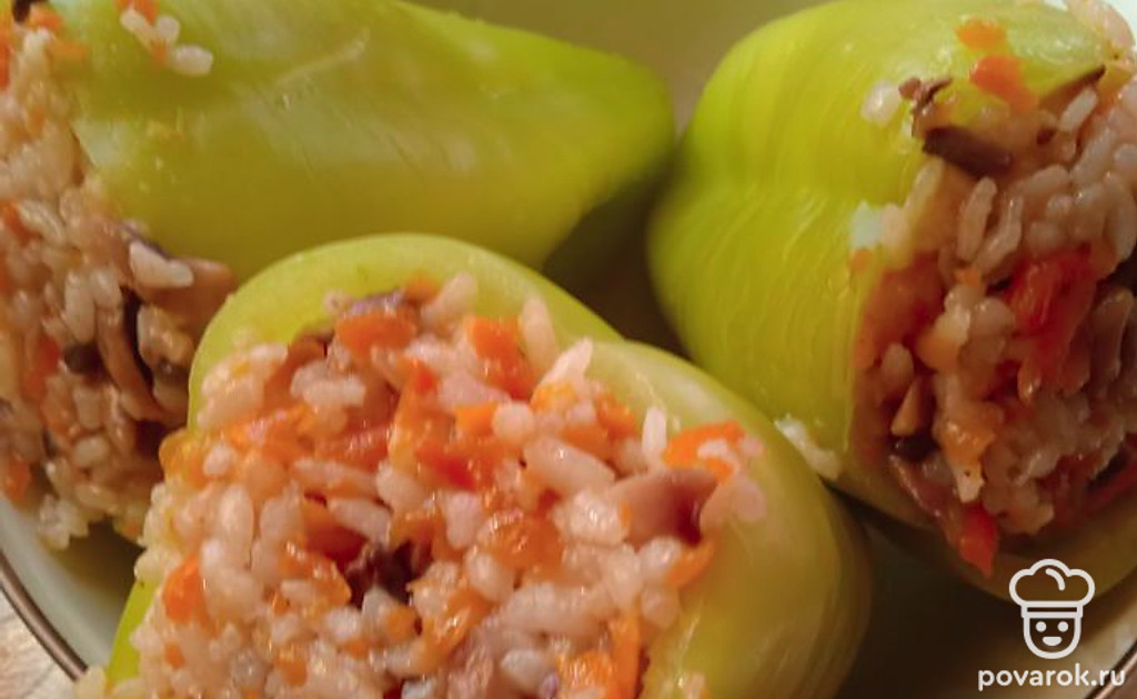 Перец, фаршированный рисом, шампиньонами и морковью.