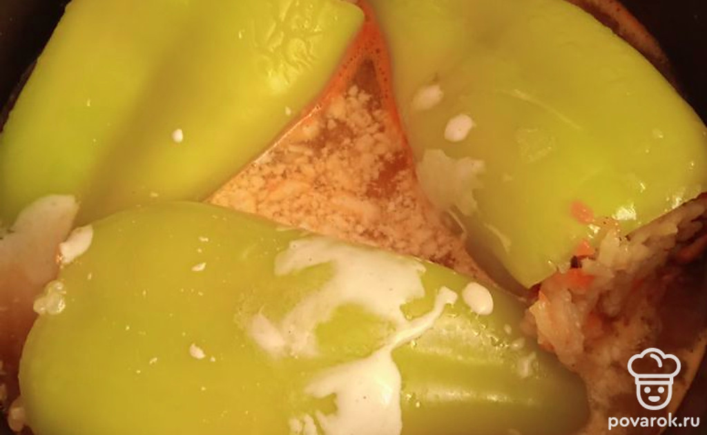 Когда рис с шампиньонами будет готов, нафаршируйте перцы.