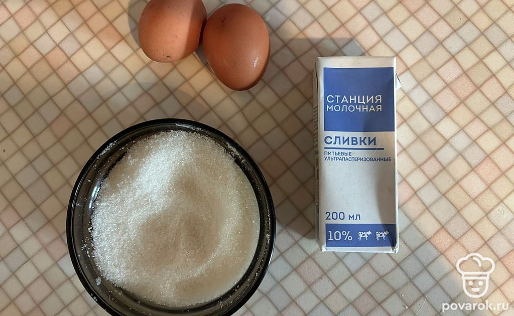 В миску поместите сливки, соль, сахар и яйца.