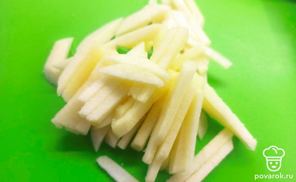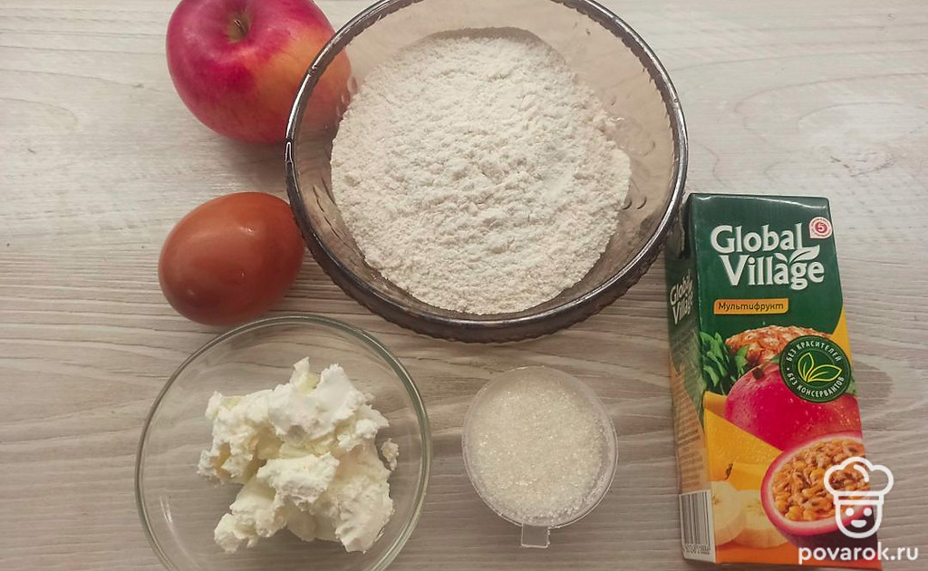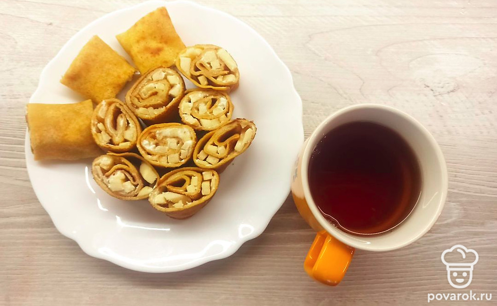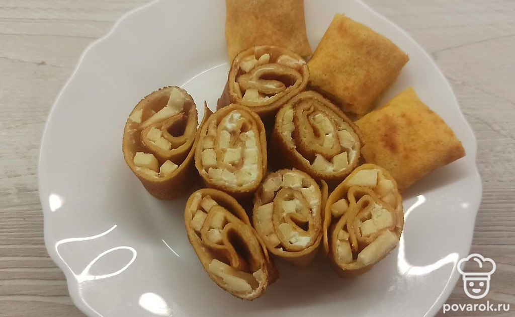 Сладкие блинчики на соке с яблочно-творожной начинкой