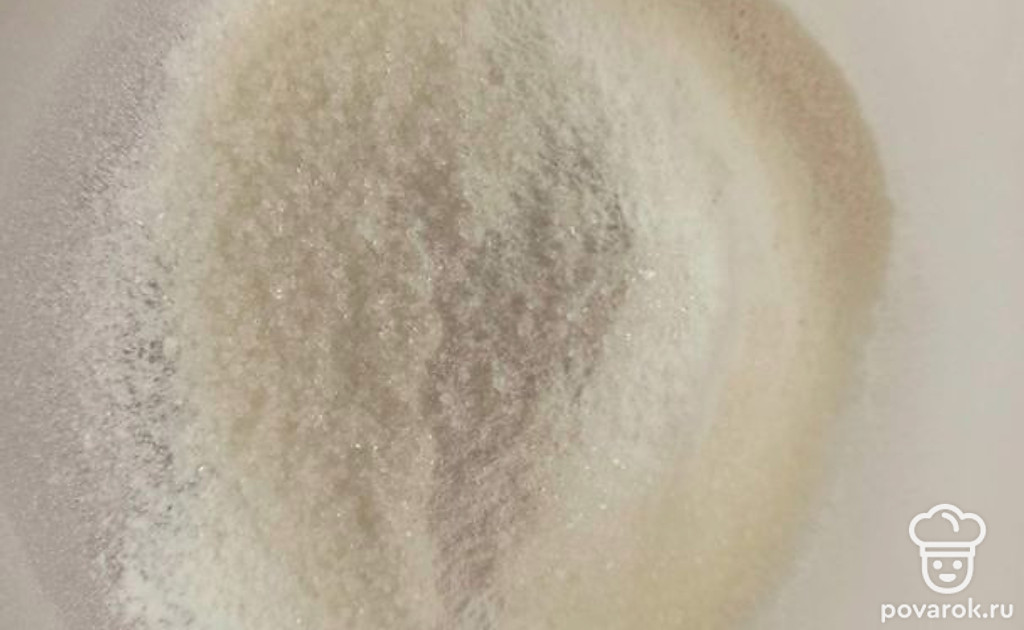 Муку просейте, добавьте 1,5 столовых ложки сахара и перемешайте.