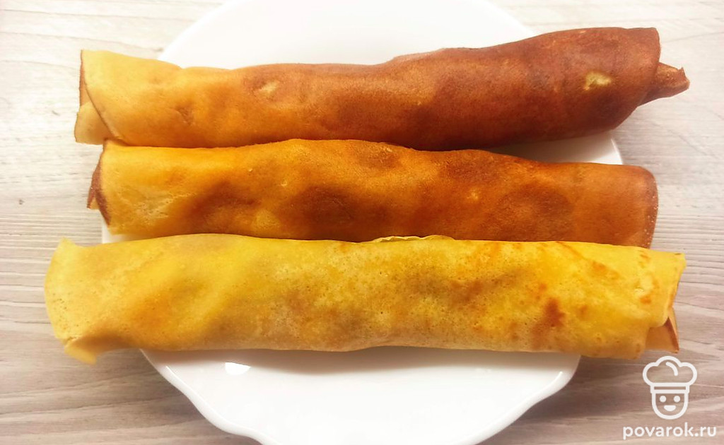Обжарьте блинчики на горячей сковороде с двух сторон (по 2-3 минуты).