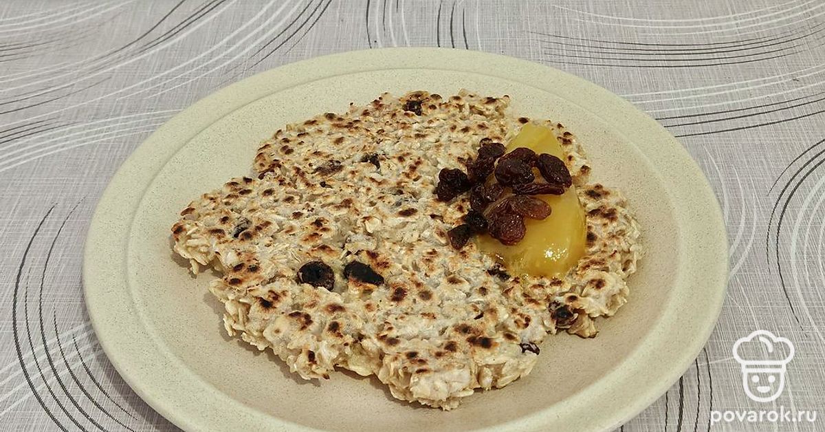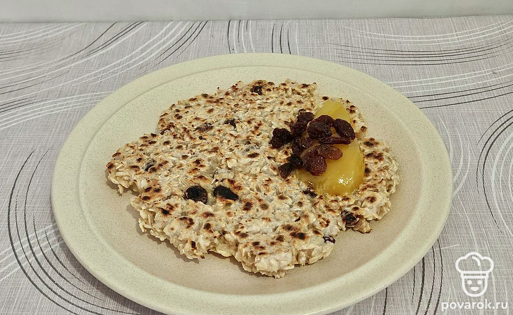 Подавайте блин сразу после приготовления. Перед подачей можете украсить изюмом.