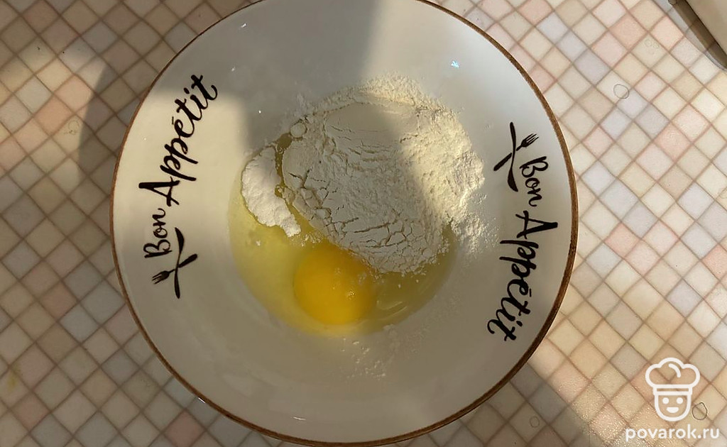 В миску поместите соль, сахар, яйцо и муку.