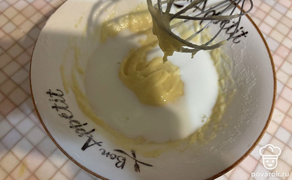 К тесту влейте молоко.