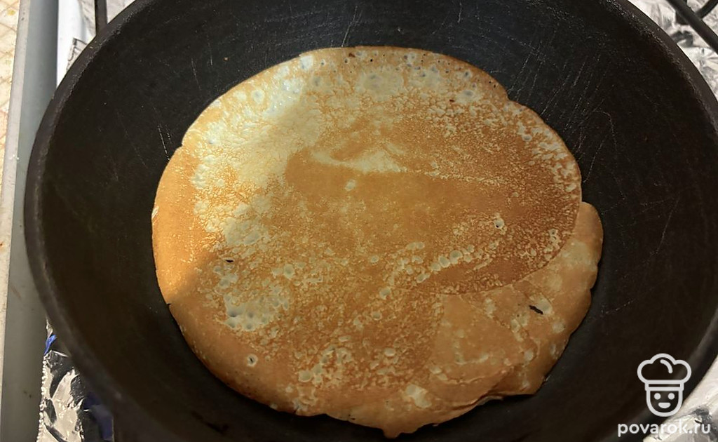 Жарьте блины с обеих сторон до золотистого цвета.