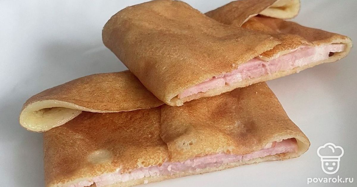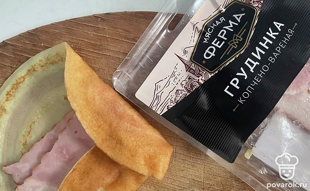 По этому рецепту получаются тонкие блины. Они сытные благодаря грудинке и очень ароматные.