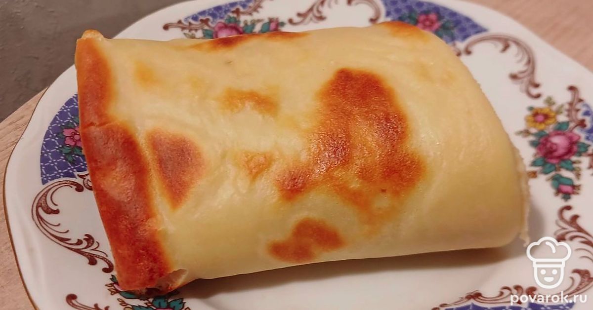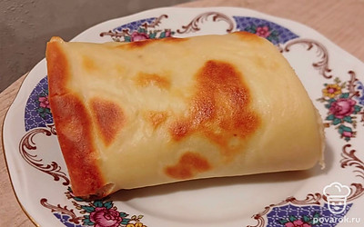 Сверните в виде рулета и разрежьте на 3 части. Финский блин готов!