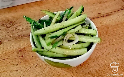 Подавайте огурцы к столу холодными. Предварительно перемешайте.