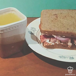 Подавайте сэндвич с охлажденным апельсиновым соком.