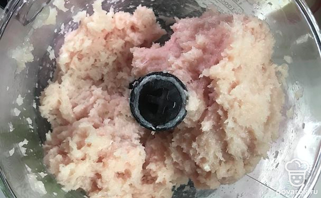 Куриное филе измельчите в блендере, или в мясорубке.